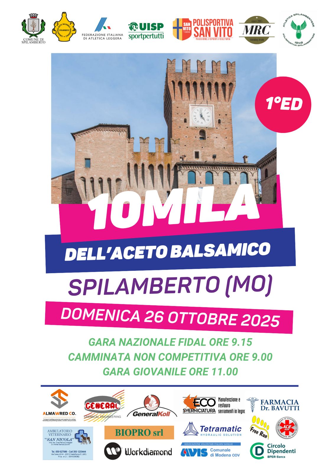 Si svolgerà domenica 26 ottobre a Spilamberto, la prima edizione della gara podistica “10mila dell’aceto balsamico”, competizione sportiva Fidal che per la prima volta vedrà giovani e master competere sul circuito allestito nel centro abitato di Spilamberto.