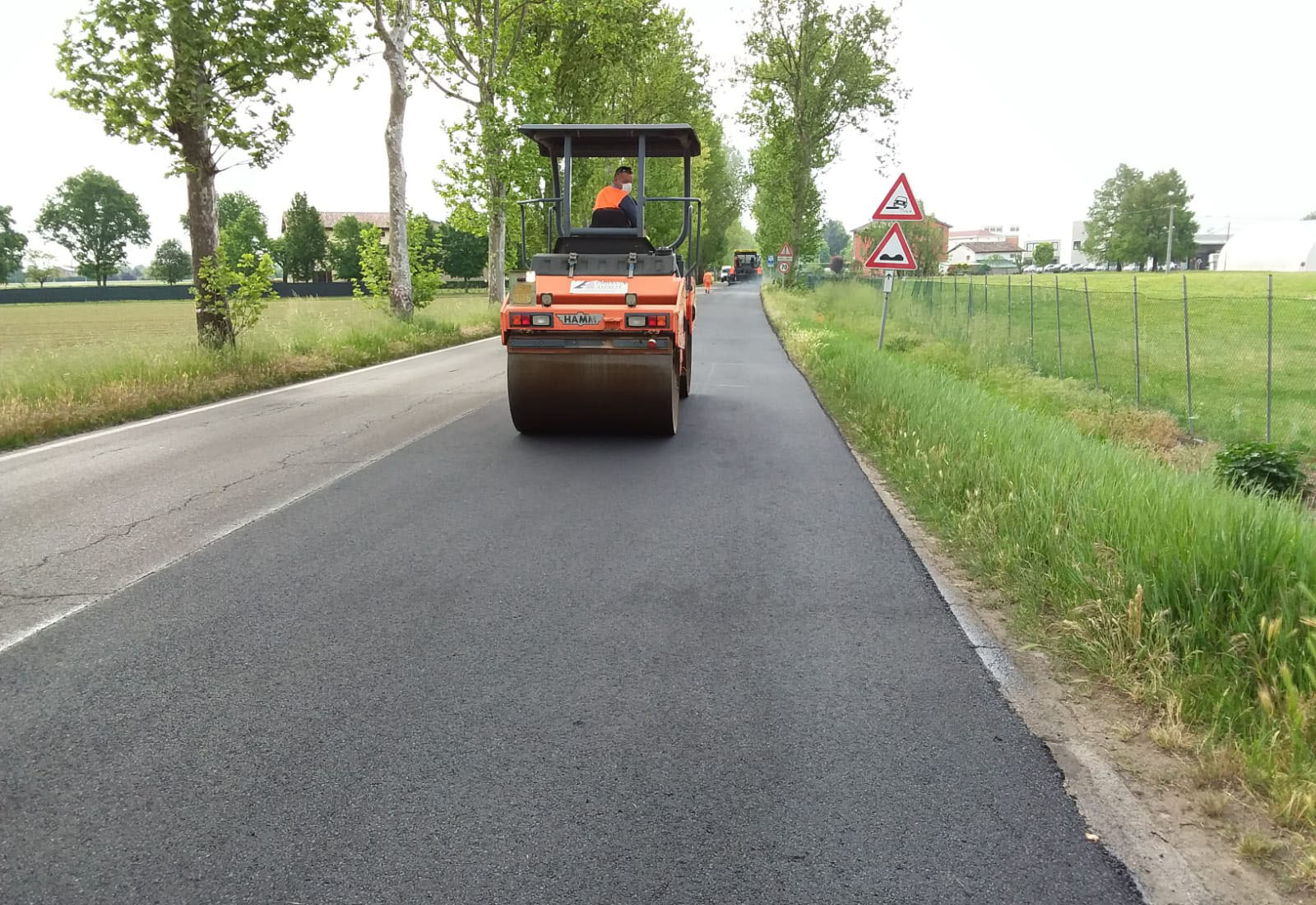 Nel pomeriggio il cantiere si sposta lungo la strada provinciale 1 nel tratto tra Rami di Ravarino e Casoni.