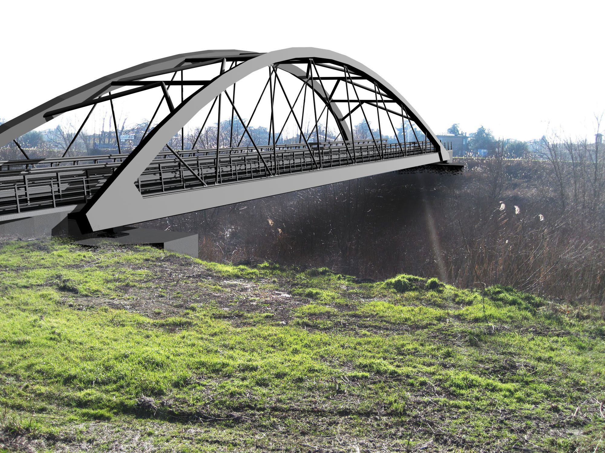 Il nuovo ponte di Bomporto sarà a campata unica di 80 metri e due archi di altezza di 12 metri circa con una carreggiata larga 14 metri a due corsie e due piste ciclabili laterali.