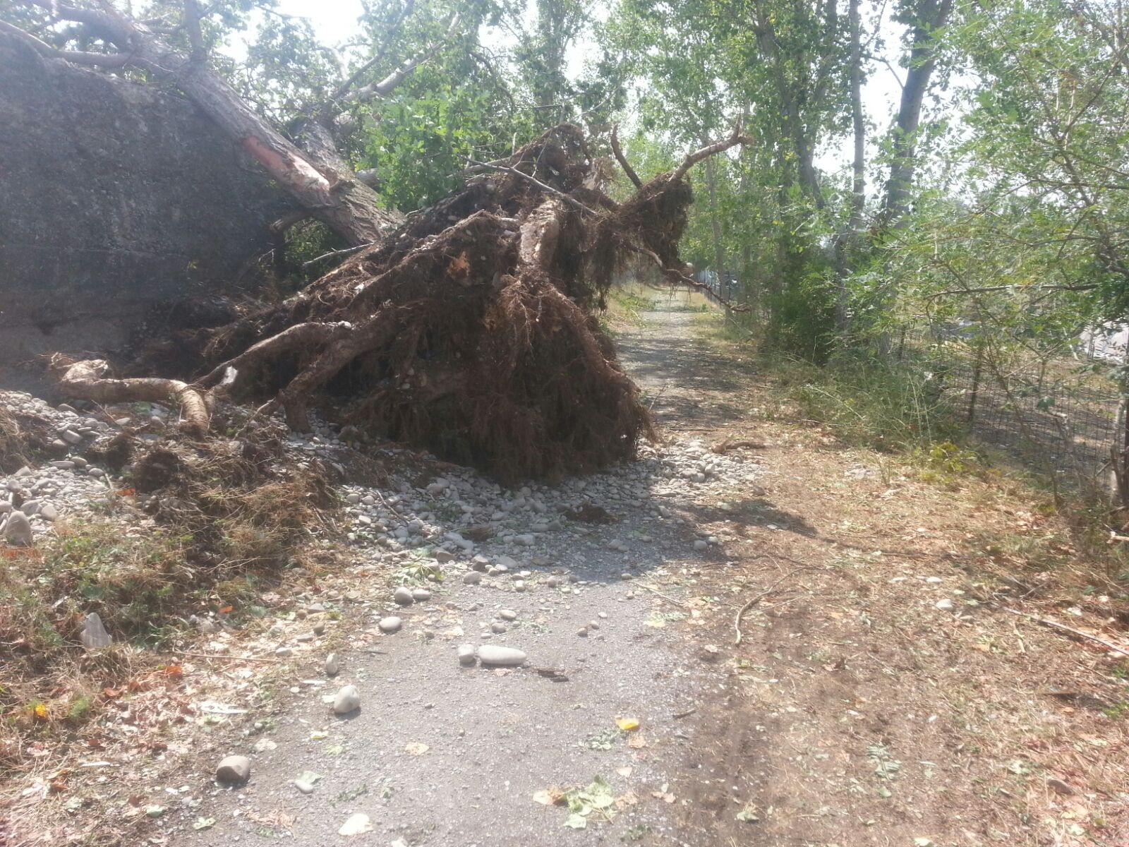 Secondo i tecnici provinciali della Viabilità è la prima volta che succede un episodio del genere da quando sono stati aperti questi percorsi, molto utilizzati da ciclisti e pedoni soprattutto nel fine settimana; a causa del forte vento sono caduti o si sono spezzati anche alberi di notevoli dimensioni e del tutto sani.