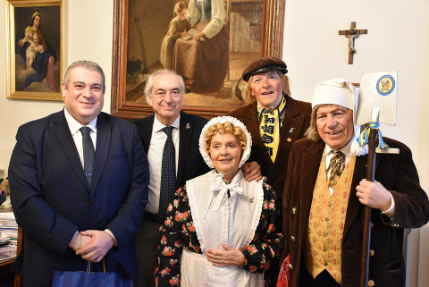 Una visita nel corso della quale, la Società del Sandrone, ha consegnato a Braglia il calendario 2026 della società carnevalesca e quello a strappo con frasi e massime in dialetto modenese.