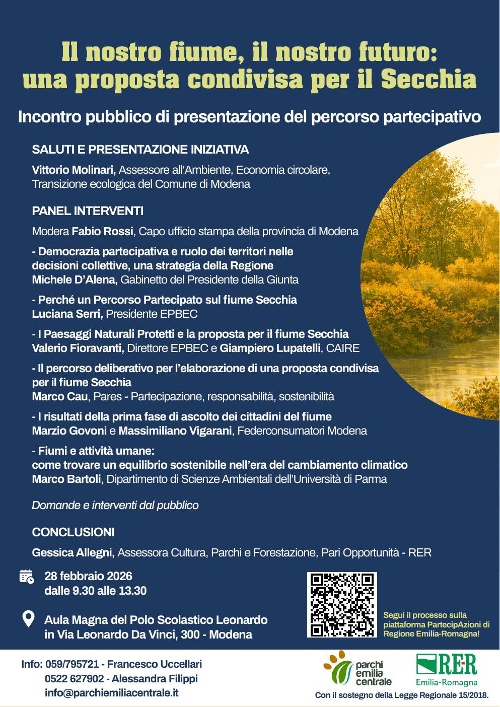 L’incontro vedrà la partecipazione della Regione Emilia Romagna, con l’intervento dell’assessora a Parchi e Forestazione Gessica Allegni e del Comune di Modena con l’assessore all’Ambiente Vittorio Molinari.