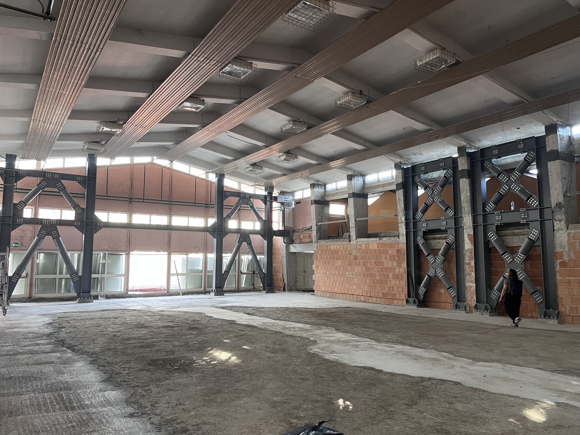 In particolare, i lavori prevedono un intervento di miglioramento sismico e la realizzazione di nuove fondazioni integrative delle esistenti, l’installazione di portali interni in acciaio, il rinforzo degli elementi strutturali attraverso l’allargamento delle sezioni e l’impiego di fibra di carbonio, il consolidamento dei tamponamenti interni ed esterni, il rifacimento totale del blocco bagni e spogliatoi, il rifacimento della pavimentazione, oltre che opere edili e impiantistiche accessorie per il ripristino degli impianti.
