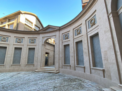 In particolare, i lavori, che termineranno all’inizio di ottobre, riguardato il recupero e la riqualificazione del cortile dell’esedra, restaurando il fondale ad emiciclo e la pavimentazione del cortile, oltre al cortiletto retrostante, permettendo di completare così la quinta scenica che funge da fondale al cannocchiale visivo che partendo dal portico esterno ed attraversando l’atrio di accesso arriva alla statua dell’Ercole Farnese.