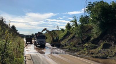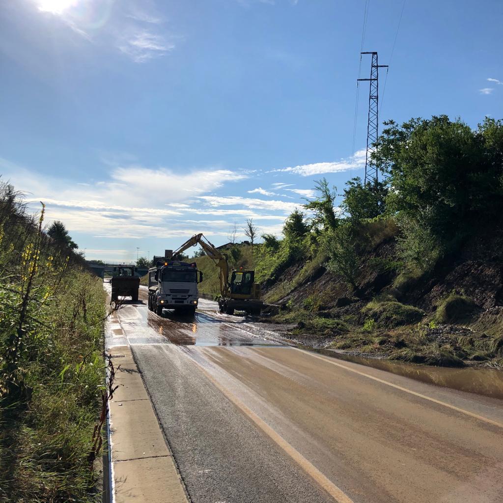 Sono in corso i lavori di sgombero e pulizia da fango e detriti di un tratto della Nuova Pedemontana a Vignola dove si sono verificati alcuni allagamenti e cedimenti di scarpata causati dal maltempo.
