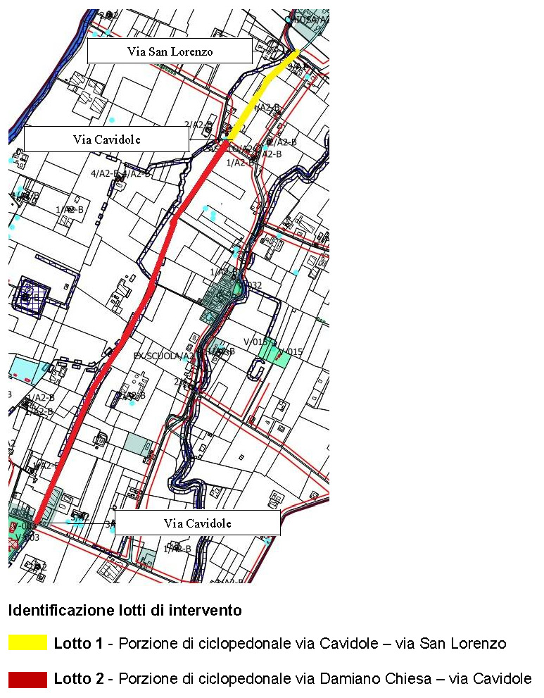 Il progetto prevede una suddivisione in due lotti di intervento: la porzione di ciclopedonale tra via Cavidole e via San Lorenzo (lunga 550 metri) e il tratto tra via Damiano Chiesa e via Cavidole (1950 metri).