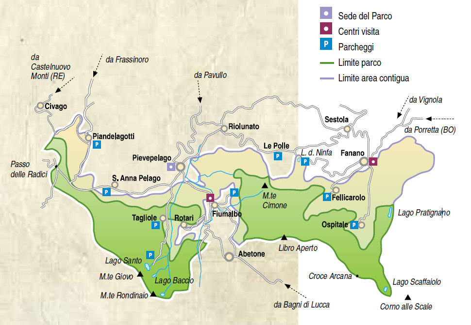Il Parco tutela circa 15.000 ettari di crinale appenninico nel territorio dei comuni di Fanano, Sestola, Montecreto, Riolunato, Pievepelago, Fiumalbo e Frassinoro