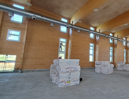La nuova palestra scolastica è realizzata integralmente in legno x-lam, sarà caratterizzata da elevate prestazioni energetiche strutturali e antisismiche e a basso impatto ambientale.