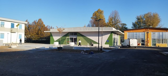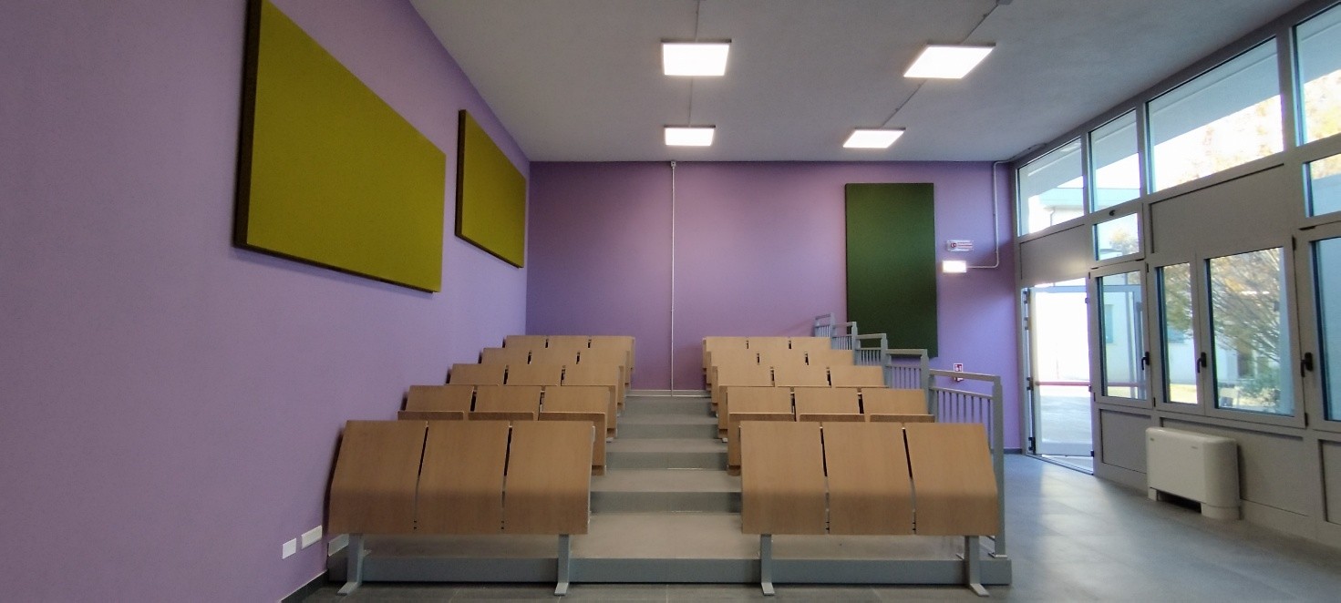 Tale scelta permette non solo di realizzare aule di dimensioni ed altezza corretta rispetto alla normativa vigente, ma anche di operare il collegamento tra la Palazzina “B” e la palazzina “E” in modo da ottimizzare gli spostamenti degli alunni ed ottimizzare la dislocazione delle classi suddivise nei due indirizzi “agrario” ed “enogastronomico”.