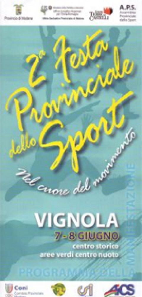 La seconda Festa Provinciale dello Sport è stata realizzata su iniziativa dell’Assemblea Provinciale dello sport, in collaborazione con il Comune di Vignola, l’Unione Terre di Castelli, la Provincia, UISP, CONI, CSI e le Associazioni Sportive del territorio.