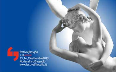 Un concetto chiave della tradizione filosofica e una questione cruciale dell’esperienza contemporanea: è “amare” il tema della tredicesima edizione del Festivalfilosofia, che si tiene da venerdì 13 a domenica 15 settembre a Modena, Carpi e Sassuolo. Gli appuntamenti in programma sono quasi 200 e tutti gratuiti, tra lezioni magistrali, mostre, concerti, spettacoli e cene filosofiche. Il Festivalfilosofia è l’evento più importante e atteso della stagione culturale modenese, in grado di richiamare ogni anno parecchie decine di migliaia di appassionati da tutto il mondo. I numeri descrivono un’iniziativa di grande successo con 1 milione e 411 mila presenze dal 2001 al 2012, in un continuo crescendo dalle 34 mila presenze del 2001 alle oltre 184 mila del 2012.