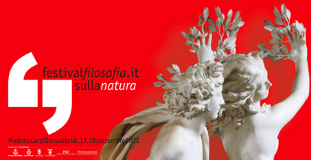 È “natura” il tema dell’undicesima edizione del Festivalfilosofia, che si tiene da venerdì 16 a domenica 18 settembre a Modena, Carpi e Sassuolo. Gli appuntamenti in programma sono quasi 200 e tutti gratuiti, tra lezioni magistrali, mostre, spettacoli, letture, giochi per bambini e cene filosofiche. Il Festival della Filosofia è l’evento più importante e atteso della stagione culturale modenese, in grado di richiamare parecchie decine di migliaia di appassionati da tutto il mondo. I numeri descrivono una iniziativa di grande successo con oltre 1 milione di presenze dal 2001 al 2010 (in un continuo crescendo dalle 34 mila presenze del 2001 alle 170 mila del 2010).