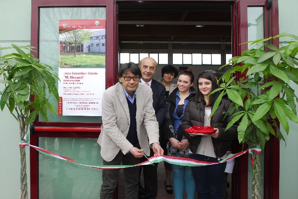 La cerimonia di inaugurazione della palestra del Morandi si è svolta mercoledì 27 marzo alla presenza del presidente della Provincia di Modena Emilio Sabattini; Fernando Ferioli, sindaco di Finale Emilia; Anna Maria Silvestris, dirigente scolastico del Moranti; Alfredo Bertelli, sottosegretario alal Presidenza della regione Emilia Romagna, Elena Malaguti, assessore provinciale all’Istruzione e Enrico Stefani, presidente dell’Associazione nazionale magistrati di Modena che lo scorso anno dopo il sisma ha effettuato una raccolta di fondi tra i propri iscritti a favore del conto corrente della Provincia; all’evento hanno partecipato anche Roberto Roccato, presidente del Consiglio d’istituto; gli studenti Raffaella Zuccaro e Ciro Castellano e numerosi studenti dell’istituto.