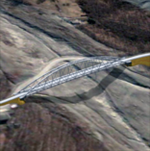 La soluzione al problema è stata individuata quindi nello scavalcamento della frana con un viadotto di 160 metri che prevede un’unica campata, sette metri di larghezza della carreggiata e un marciapiede di un metro e mezzo. La struttura del ponte è costituita da due archi in tubolari metallici collegati tra loro. Agli archi è appeso mediante altri tubolari metallici l’impalcato in profilati in acciaio e cemento armato. Per la realizzazione della struttura portante dell’impalcato si prevede l’utilizzo di 820 tonnellate di acciaio, mentre il peso totale dell’impalcato stesso è di 2.100 tonnellate. Il progetto del viadotto è stato realizzato dagli ingegneri Alessandro Manni (direttore dell’Area Lavori Pubblici della Provincia), Luca Piacentini e Giorgio Piacentini.