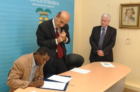 Il documento è stato sottoscritto lunedì 30 ottobre dal presidente della Provincia Emilio Sabattini, dal presidente di Ghanacoop Thomas McCarthy e dai rappresentanti degli altri soggetti che hanno aderito al percorso promosso con il patrocinio dell’Organizzazione internazionale per le immigrazioni (Oim): Gaetano De Vinco, presidente di Confcooperative; Graziano Massa, presidente di Emilbanca; Pietro Odorici, presidente di Promec; Aldo Tomasi, preside della facoltà di Medicina dell’Università di Modena e Reggio Emilia; Stefano Cosma per il preside della facoltà di Economia “Marco Biagi” Sergio Paba. Ha partecipato all’iniziativa anche Peter Schatzer, direttore dell’Ufficio regionale per il Mediterraneo e capo missione in Italia dell’Oim.
