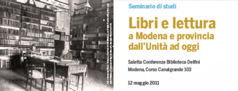 Giovedì 12 maggio a Modena, nell’ambito delle iniziative per le celebrazioni del 150° anniversario dell’Unità d’Italia, presso la Biblioteca Delfini – Corso Canalgrande 103, si terrà il seminario di studi “Libri e lettura a Modena e provincia dall’Unità d’Italia ad oggi”.