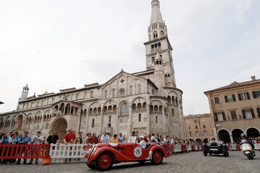 In occasione di Modena Terra di Motori 2011 la città torna ad essere una delle tappe di passaggio della 1000 Miglia. Sabato 14 maggio dalle 17 fino alle 20 è previsto l’arrivo a Modena della prestigiosa competizione storica, che vede sfilare 375 auto storiche che hanno partecipato alla gara prima del 1957, precedute da 150 Ferrari. Le auto entrano a Modena da via Emilia Est, per poi proseguire su Corso Canalgrande e costeggiare quindi la spettacolare facciata del Palazzo Ducale, per dirigersi poi verso la sede del nascente Museo Casa Natale Enzo Ferrari, che verrà inaugurato a fine 2011, con uno stop per la firma da parte degli equipaggi sul libro degli ospiti e la consegna di un premio speciale. Per l’occasione all’interno del cantiere del Museo viene allestita una tribuna per stampa, ospiti e visitatori ed un’area hospitality curata dai Consorzi dei prodotti tipici di Modena e dal Caffè Concerto che fanno da cornice al passaggio delle auto.
