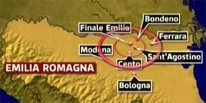 20 maggio 2012. Alle ore 4.04 un terremoto di magnitudo 6 della scala Richter ha colpito l’ Emilia Romagna in particolare le province di Modena, Ferrara e Bologna, profondità 6.3 km, epicentro tra i comuni modenesi di San Felice sul Panaro e Finale Emilia (dati INGV Istituto nazionale Geofisica e Vulcanologia). Si registrano quattro morti nel ferrarese per il crollo di edifici industriali ed un morto nel bolognese. Danni nel modenese e nel ferrarese. L’Agenzia regionale di Protezione Civile ha attivato il Centro Operativo Regionale e sta coordinando gli interventi, in raccordo con i Vigili del Fuoco operativi sui luoghi colpiti dal sisma, Prefetture, Comuni, Province interessate, volontariato di Protezione Civile ed altri enti e strutture del sistema di Protezione Civile.