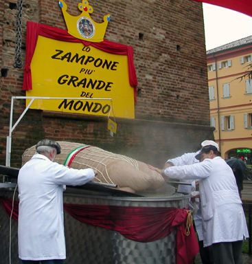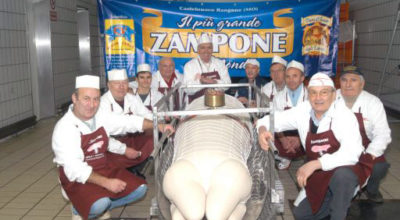 Domenica 3 dicembre a Castelnuovo Rangone diciassettesima edizione della festa popolare che celebra lo zampone più grande del mondo, un prodotto di oltre 750 kg realizzato dai Maestri Salumai Modenesi e distribuito gratuitamente in piazza.