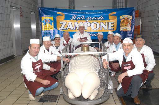 SuperZampone 2006 è quindi l’occasione per celebrare lo zampone, un insaccato tipico modenese realizzato con cotenne e carni suine (guancia, testa, gola, spalla) tritate, salate e speziate. L’impasto ottenuto viene inserito nella pelle della zampa anteriore del suino, di cui prende la forma. Lo zampone ha un marchio di tutela apposto sulle confezioni che riporta il marchio del consorzio, la dicitura Zampone di Modena, il simbolo della tutela IGP (Indicazione Geografica Protetta) e gli estremi dell’autorizzazione ministeriale.